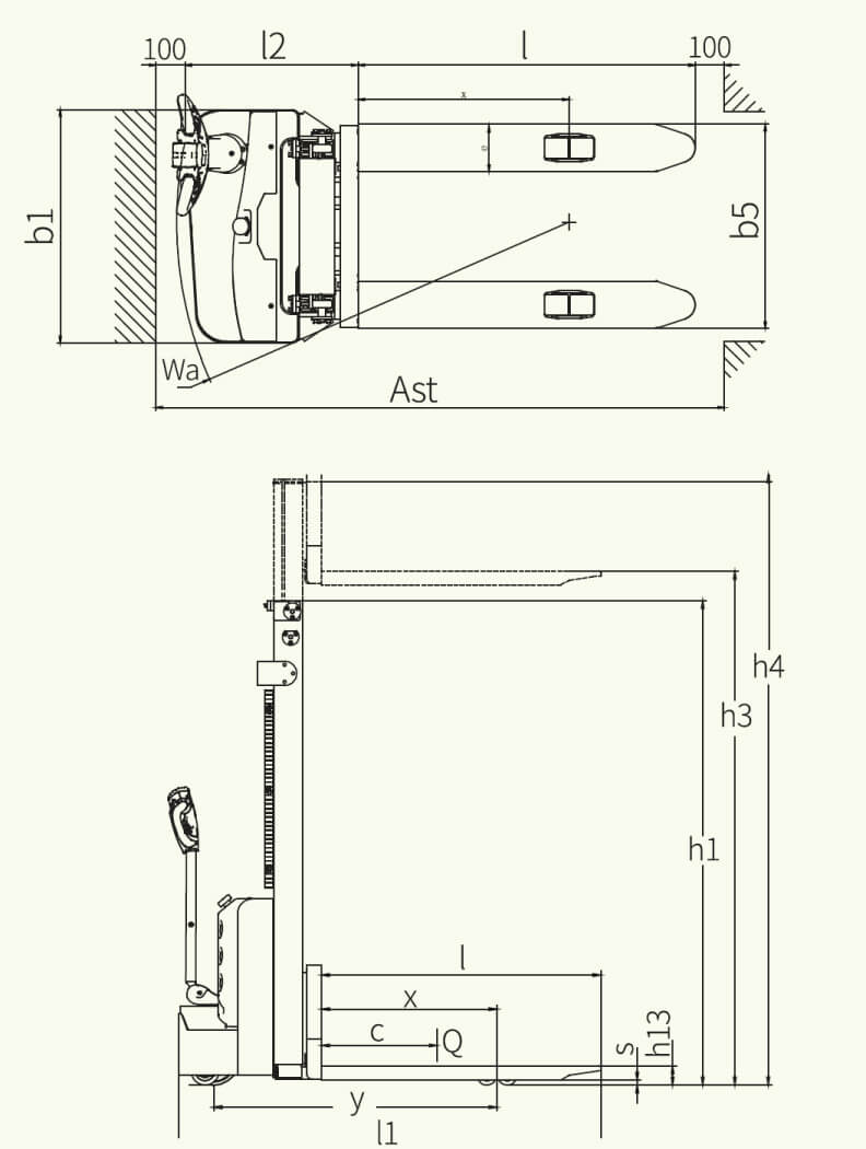 Ширина рабочего прохода (AST), с грузом 800х1200мм по длине, мм: 2034