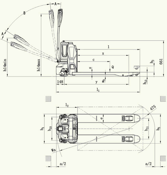 Высота ручки управления в положении хода (h14), мин./макс., мм: 700 / 1160